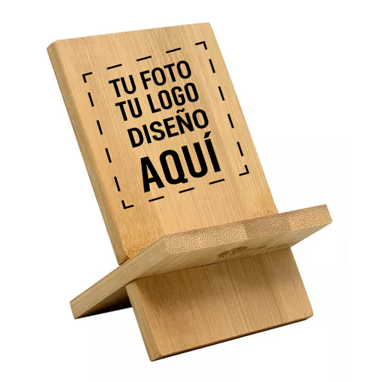 - Soporte para teléfono de bambú con abertura (1 cm de diámetro) para el cargador del teléfono.